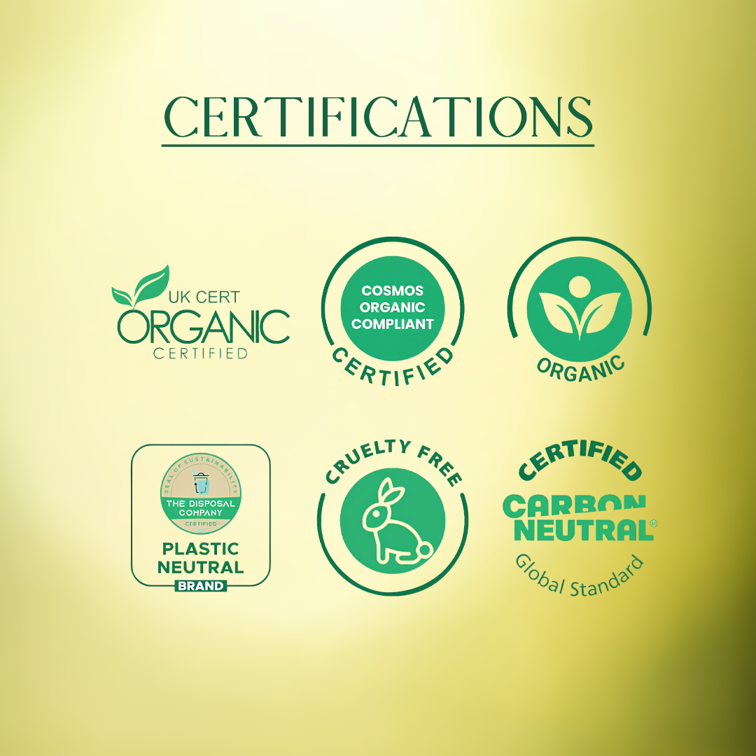 Rosehip oil, moringa oil, aloe vera juice infused with powders of shitake mushroom, chaga mushroom and ashwagandha, astaxanthin, cetearyl alcohol, stearic acid, xanthan gum, cetearyl olivate and sorbitan olivate, cosphaderm and essential oils of marjoram & Dill Seed essential oil and Nothing Else!